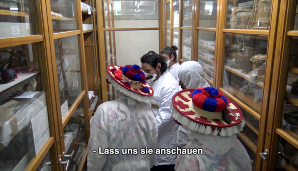 El video muestra conversaciones entre Mara’akate, la artista y el personal del Museo de Dahlem- después de haber participado en dos ceremonias. En el museo, donde cada participante fue renombrado, los Mara’akate buscaron imágenes de animales y plantas extinguidos así como utensilios ceremoniales con dibujos, patrones y/o técnicas que contuvieran información sobre métodos textiles que ya no existen en las comunidades wixárika ya no existen. Además, el vídeo muestra cómo los Mara’akate reordenaron los utensilios ceremoniales en el museo y explica la importancia de mantener un orden correcto de las cosas (materiales) sujetos no humanos. En base a sus conocimientos, este orden sus conocimientos, este orden es importante para el bienestar de la humanidad.
